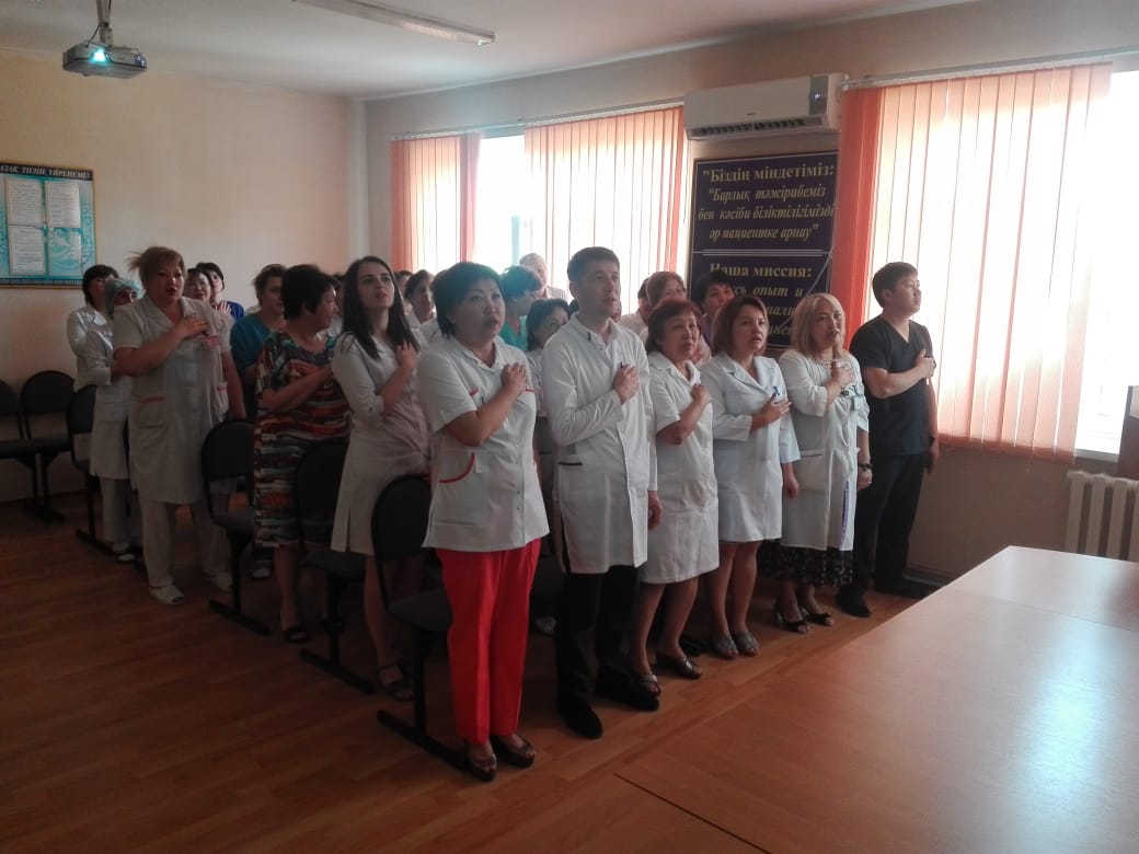 2018 жылы 4 маусымда Жамбыл облыстық терівенерологиялық диспансерінде Қазақстан Республикасының мемлекеттік рәміздер күніне орай мекеме қызметкерлерімен ҚР Әнұраны орындалды.