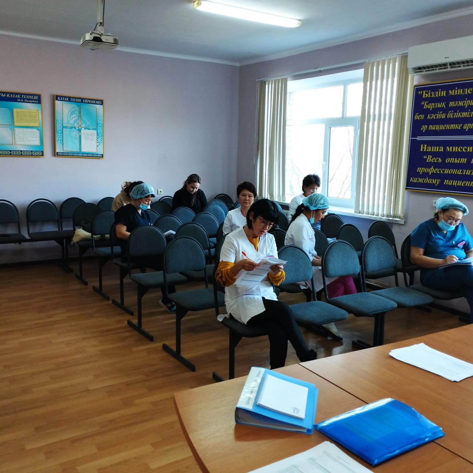 Бүгін 25.11.2022 Ж. Жамбыл облыстық тері-венерологиялық диспансерінде емдеу-профилактикалық рәсімдер мен санитарлық-дезинфекциялық режим негіздерін білу үшін орта медициналық персоналды жоспарлы аттестаттау өткізілді