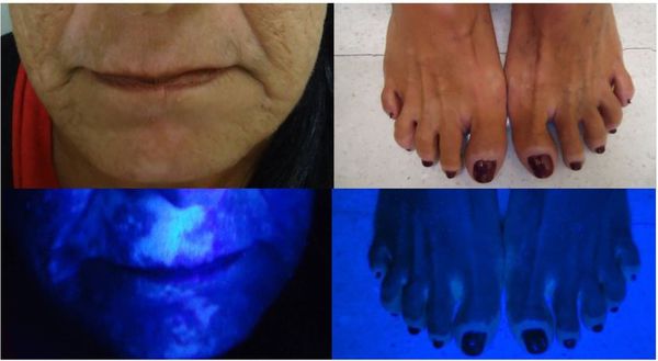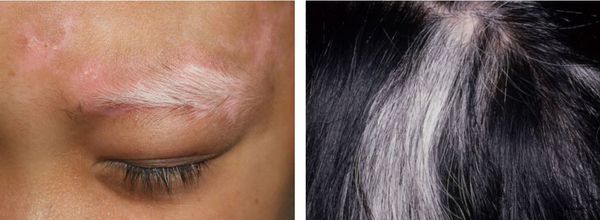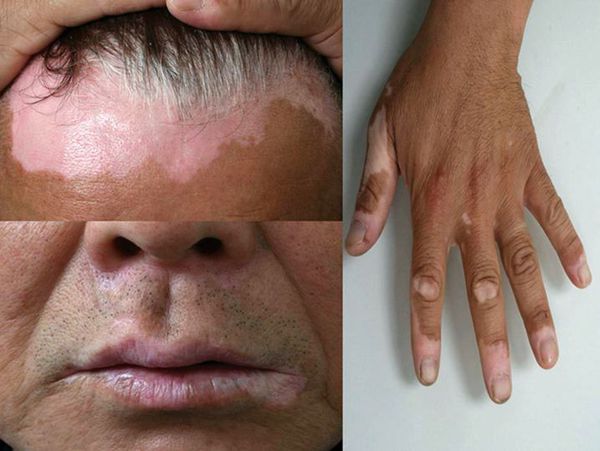 Витилиго; арх. PES-терінің жекелеген аймақтарында меланин пигментінің жоғалуымен көрінетін пигментацияның бұзылуы