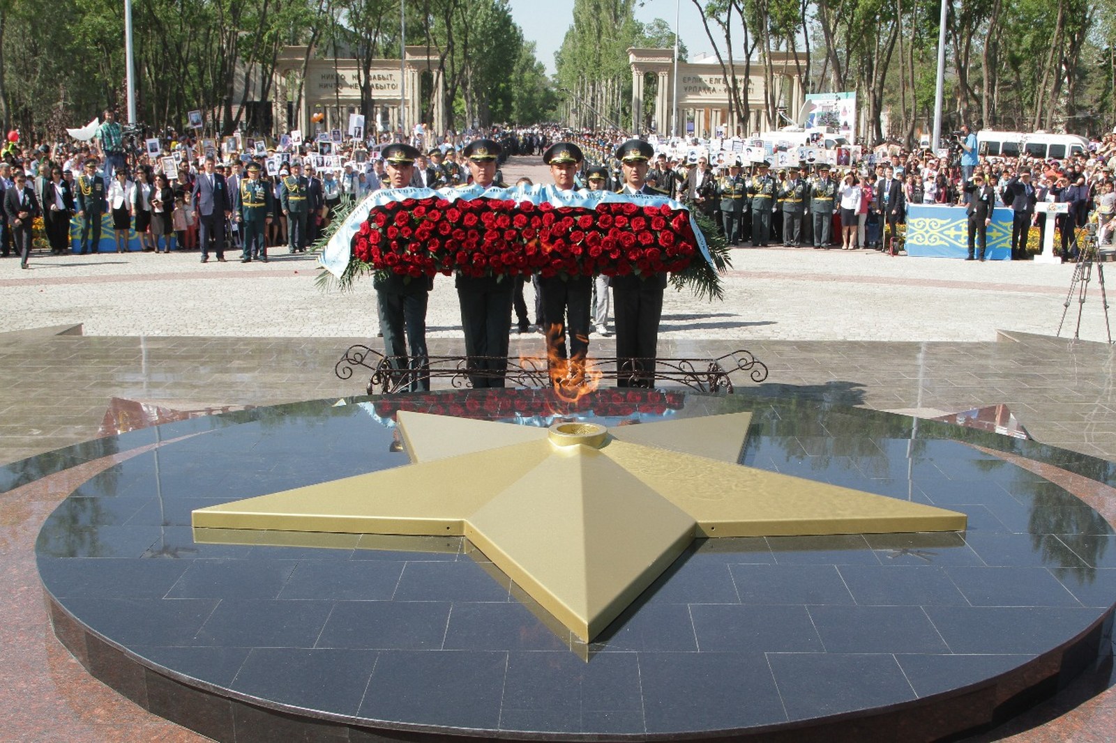 9 мая 2018 года праздничные мероприятия в Жамбылской области, посвященные 73-летию Победы в Великой Отечественной войне, торжественно прошли в парке «Жеңіс» имени Бауыржана Момышулы.